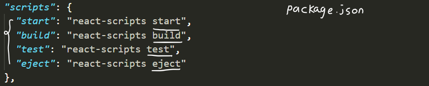 그럼 각 명령을 argument로 가지고서 react-scripts 패키지로 위임됨.