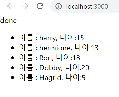 {this.state.students.map(x => {return <li key={x.name}>{`이름 : ${x.name}, 나이:${x.age}`}</li> })}