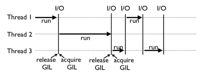 왜나면 스레드가 blocking되는 I/O작업을 수행할때는 GIL을 release 하기 때문에 (다른 스레드가 실행될 수 있도록)