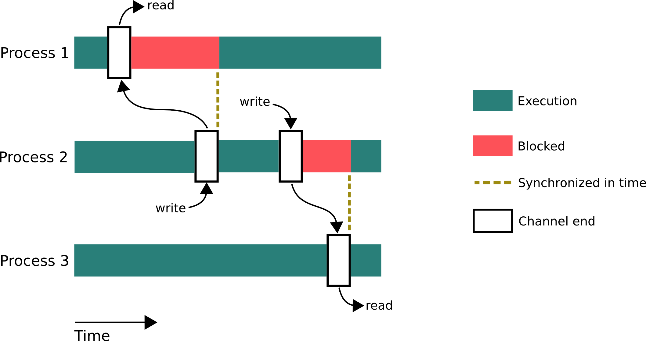 - CSP는 channel을 사용함으로써 producer, consumer를 decoupling할 수 있게 해줌. 서로에 대해 알필요가 없음.