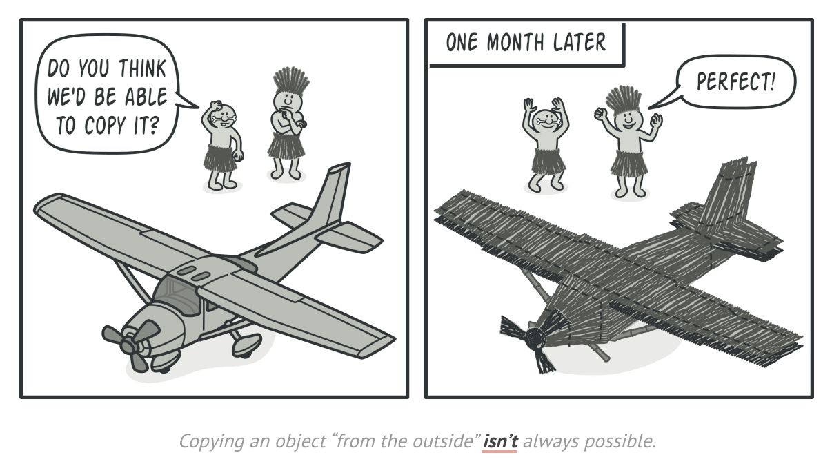 동일한 클래스의 객체를 생성한 뒤에 original 객체 필드의 값들을 새 객체로 일일히 복사하는 작업을 거친다고 하더라도 private한, original 객체 외부에서 접근 불가능한 것들은 copy할 방법이 없다.