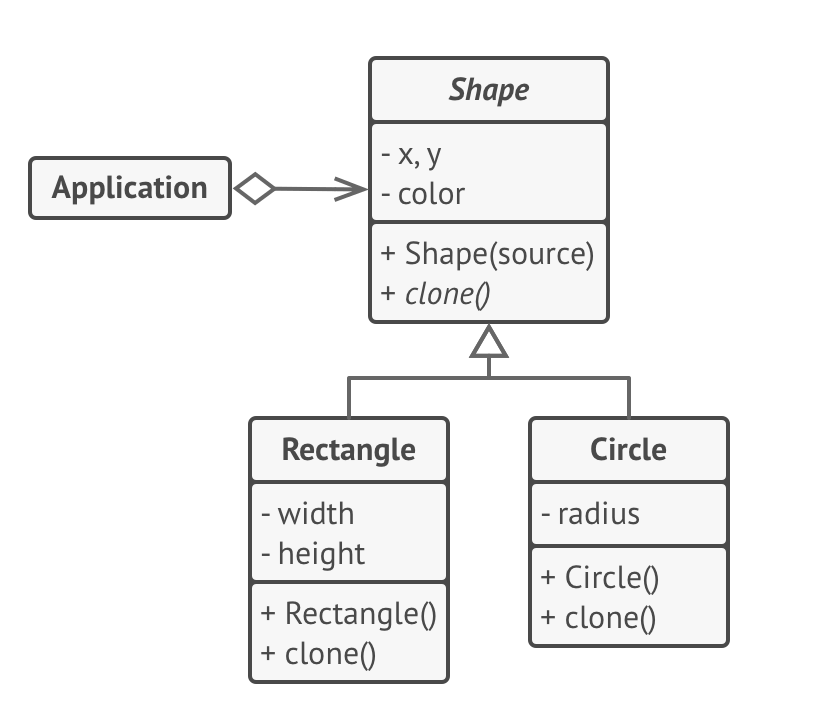 클론될 실제 객체에게 cloning process를 위임한다. (내부적으로 객체 자신을 생성자에 인자로 넘기는 식으로 클로닝 하는 인스턴스 메서드를 통해). 클로닝을 위한 공통 인터페이스를 정의하고 사용함으로써 당신의 코드가 original 객체의 클래스와 decoupling된 채 클론할 수 있도록 한다. 대개 그 인터페이스는 "clone"이라는 메소드를 포함하고 있을 뿐이다.