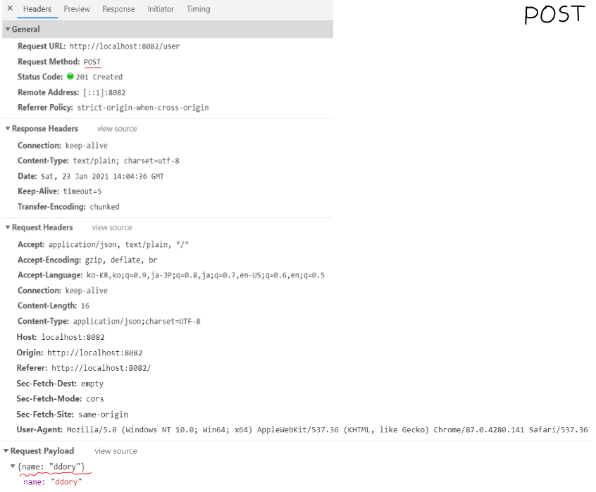 위 callback 함수 알고리즘에서 볼 수 있듯이, 요청 메서드 와 요청 url(주소)만 가지고 어떤 요청인지 알아볼 수 있었다.