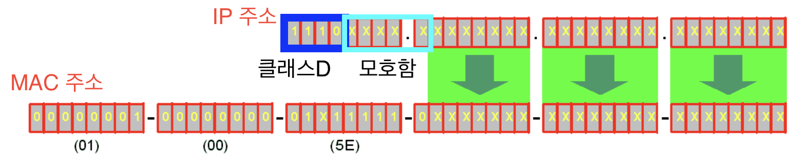 - 01-00-5e 라는 OUI로 시작 (IANA가 IEEE로 부터 할당 받은 값)